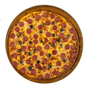 Özel pizza sos, mozzarella peyniri, et döner ve kırmızıbiber